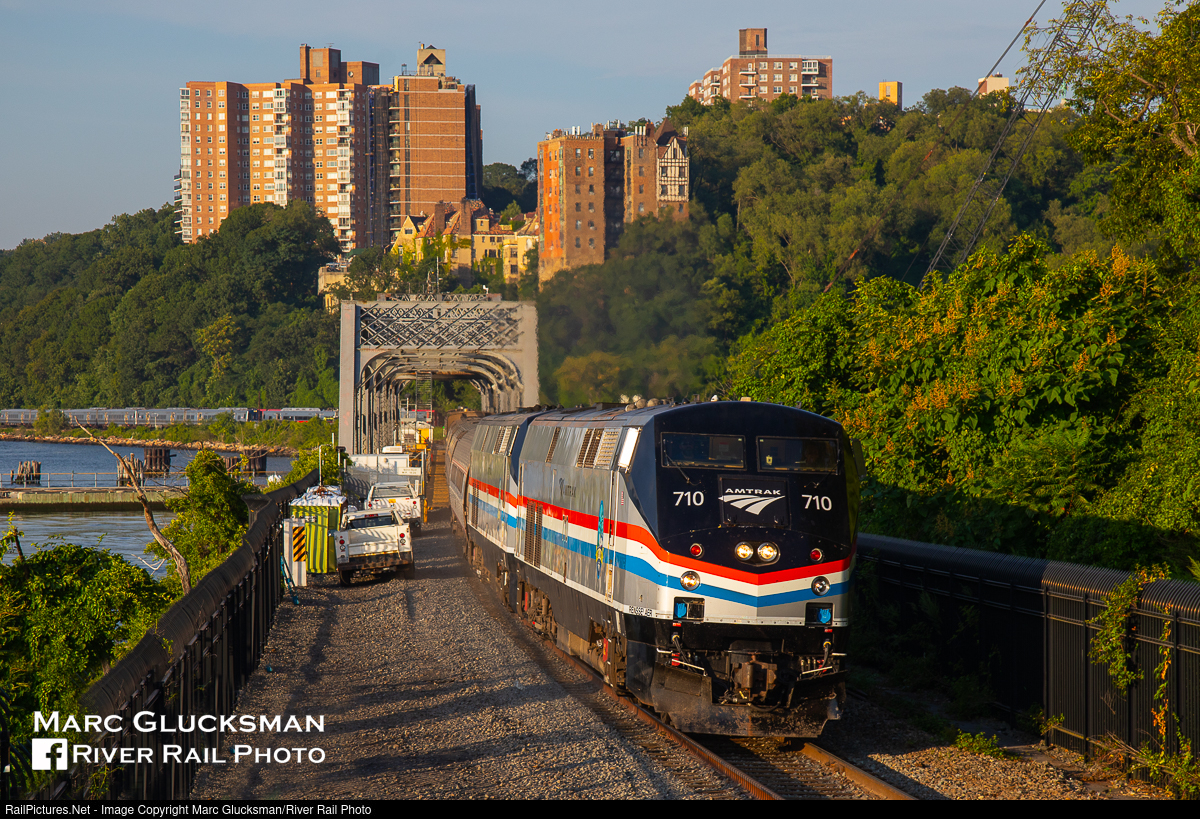 The First Amtrak Train To Penn Station. On September 3, 2018, summer construction on the Spuyten Duyvil Bridge over the Harlem River had come to an end and the first Amtrak train of the season terminated at New York Penn Station. The bridge had been placed out of service in May, cutting Amtrak's access to NYP and sending all New York City bound trains to Grand Central Terminal. The Lake Shore Limited was a dedicated Chicago, Illinois to Boston, Massachusetts train for the season, but returned to NYP the day before the rest of the service in order to set up the following day's departure. Amtrak's mechanical folks were kind enough to hand wash a pair of P32AC-DMs for the occasion. They were placed elephant style on the train, with the second being sent to be left in Sunnyside as a protect engine.