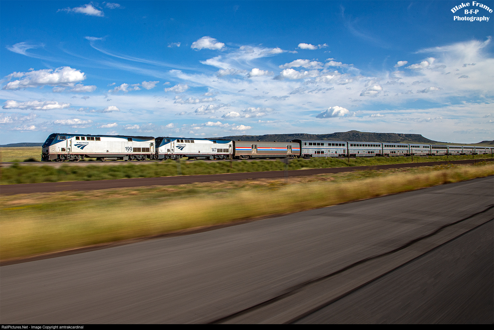 Amtrak number four is making its way across the flatlands of New Mexico, rolling along the iconic Raton subdivision. It's a partly cloudy summer day, and as the train heads east, it passes those classic T2 semaphore signals. It's one of those moments that perfectly captures the blend of travel and scenic beauty, isn't it?