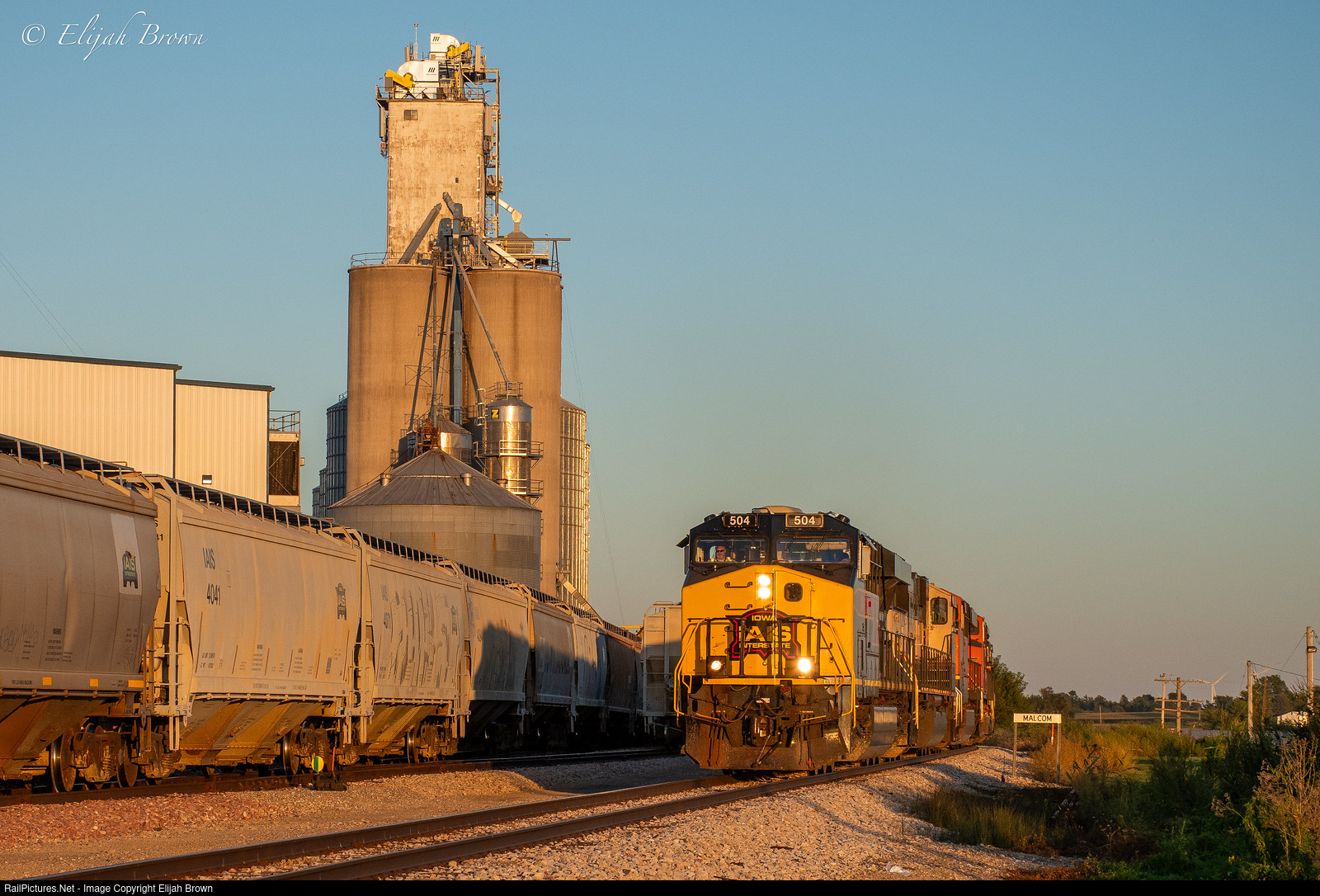 IAIS 504 leads train BICB through the small town of Malcom, IA in the late evening.