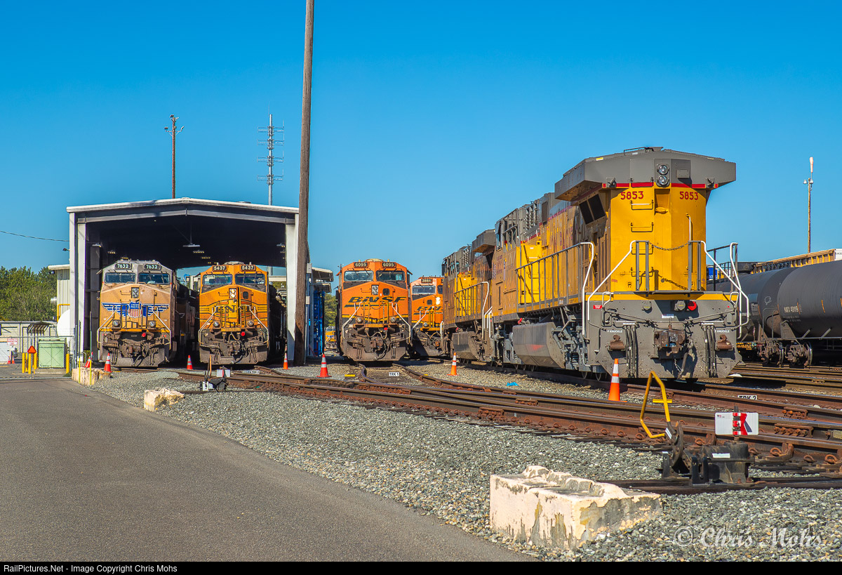 BNSF C44-9W No. 5437 is fired up, the switch is aligned and ready to leave the engine house after being serviced. It's a full house today at the port of Tacoma.