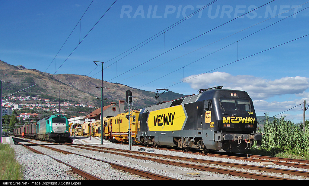 | Medway train 98210 with railway work machine, from Vilar Formoso to Entroncamento and pulled by Siemens 5628 locomotive.