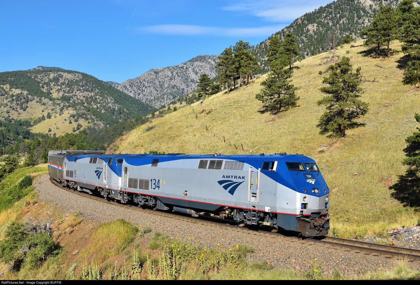 RailPictures.Net Photo: AMTK 134 Amtrak GE P42DC at Coal Creek Canyon, Colorado by BUFFIE
