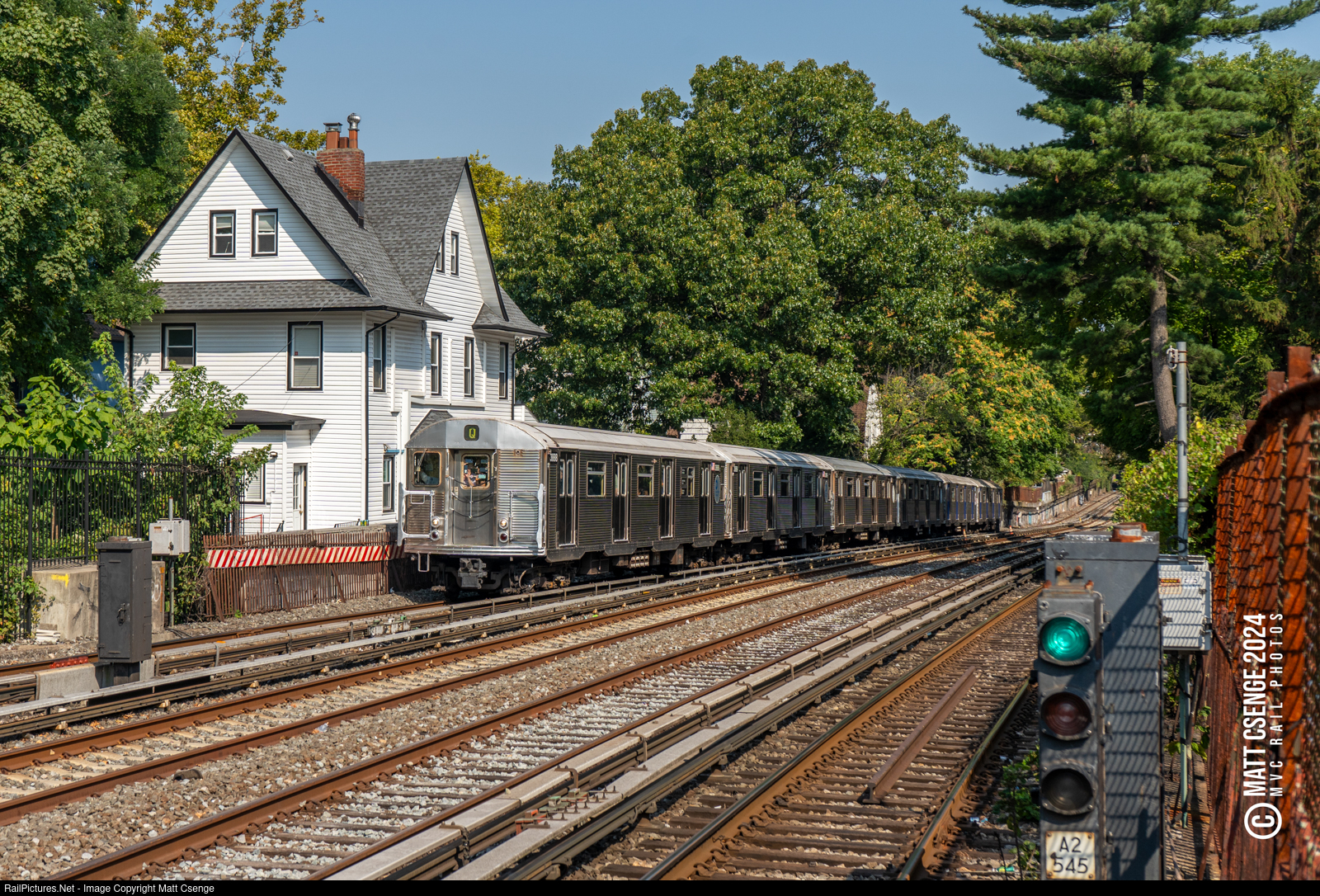 New York City Transit Authority (NYCTA) R32 car 3888 is the lead motor on a NY Transit Museum nostalgia ride seen approaching Avenue H Station on the BMT Brighton Line. The ride was organized to celebrate 60 years of the cars, which were first introduced into the subway on September 9. 1964. The cars served the city for 58 years until the final few were removed from service in 2022. |