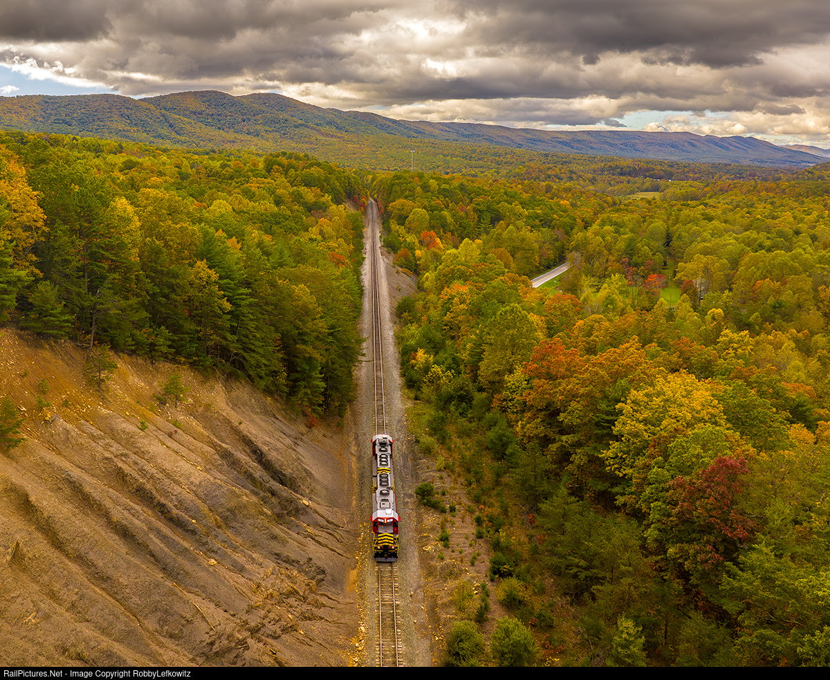 BB 13 leads a light helper set eastbound through Buffalo Gap, Virginia, along the Buckingham Branch Railroad, as they trail the N&W J 611 eastbound excursion train move.