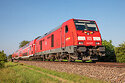 | The TRAXX DE ME diesel locomotive with the number 245 002, manufactured by Bombardier in Kassel in 2014, is on the way from Friedrichshafen Stadt to Basel Bad Bf with a push-pull train consisting of three doubledeck cars. |
