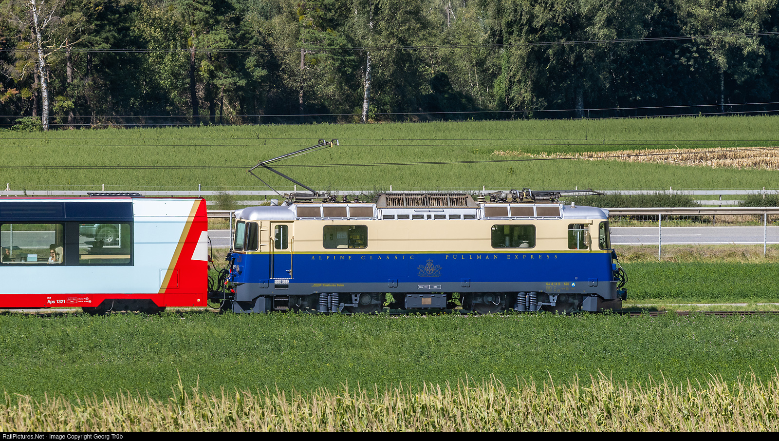 | The Rhaetian Railway's Ge 4/4 II # 626 “Malans” locomotive was given a new livery in cobalt blue and ivory to match the “Alpine Classic Pullman Express” (ACPE) saloon cars, at the suggestion of the Friends of the Salon Cars Association. The ceremonial rollout took place in Landquart on September 17. The design of the locomotive was made by graphique artist Michaela Hardmeier in cooperation with the RhB. The locomotive pulls the PE 902 GLACIER EXPRESS from (Zermatt-Brig-Andermatt-) Disentis to Chur (-St.Moritz), between Felsberg and Chur.