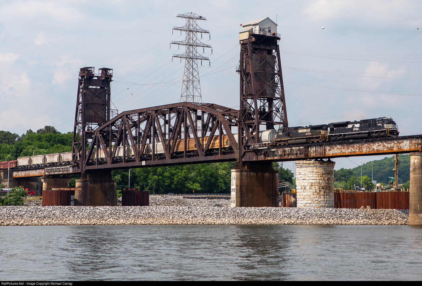 A Norfolk Southern freight crosses the historical Tenbridge in Chattanooga, TN.