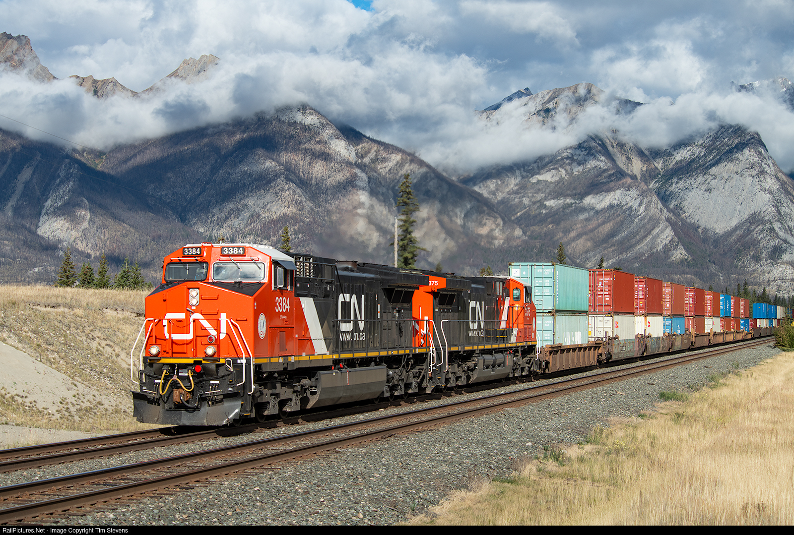 RailPictures.Net Photo: CN 3384 Canadian National Railway GE AC44C6M at Snaring, Alberta, Canada by Tim Stevens