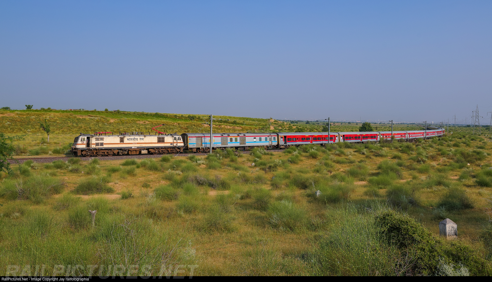RANAKPUR Express bound for Dadar powered by VADODARA WAP-7,passing through sand dunes of Thar Desert, greenish due to recent rains