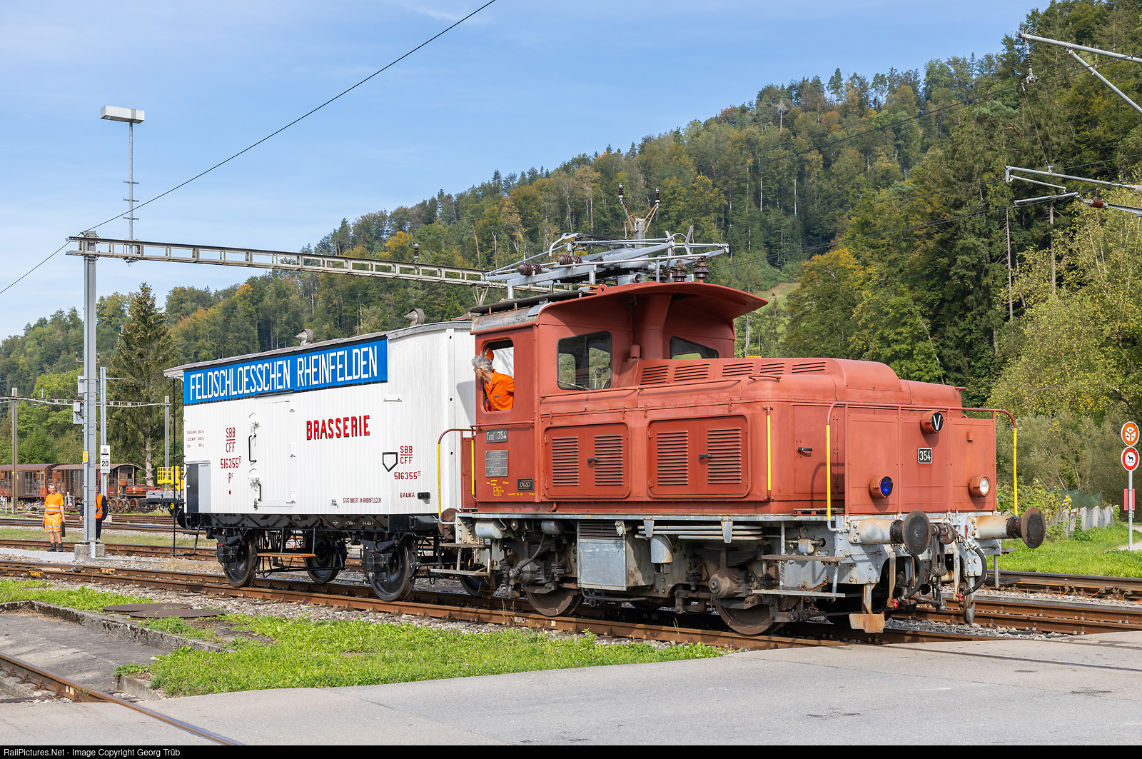 Tem III # 354 is a electro/diesel shunter, built in 1961 by SLM, MFO and SAAS for the SBB, now owned by the DVZO for shunting in Bauma. The car is newly renovated beer transport car of the Feldschlösschen brewery, P # 516 355.