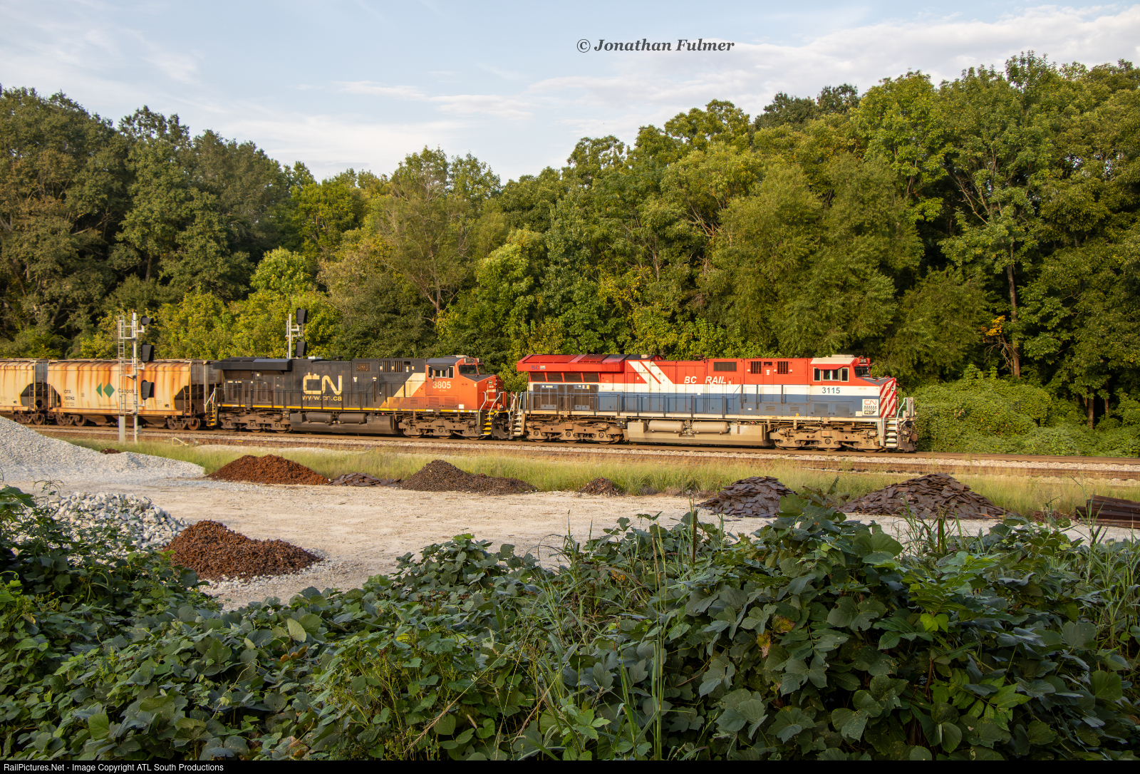 "British Columbia Powered Potash" after getting held up north for a bit, CSX B241-20 made its way into south Georgia with CN 3115, the BC Rail heritage unit, leading the loaded potash train south. This one sure drew out the crowd today, and for good reason. CN 3115 is painted in the same form that BC Rail used to paint their MLW M420 units after going to the red, white and blue paint scheme. This is also the first of the CN heritage units that has made it this far south. These loaded potash trains typically come from CN but will occasionally come off the CP as well. In this case, the train arrived in Chicago as CN B746.