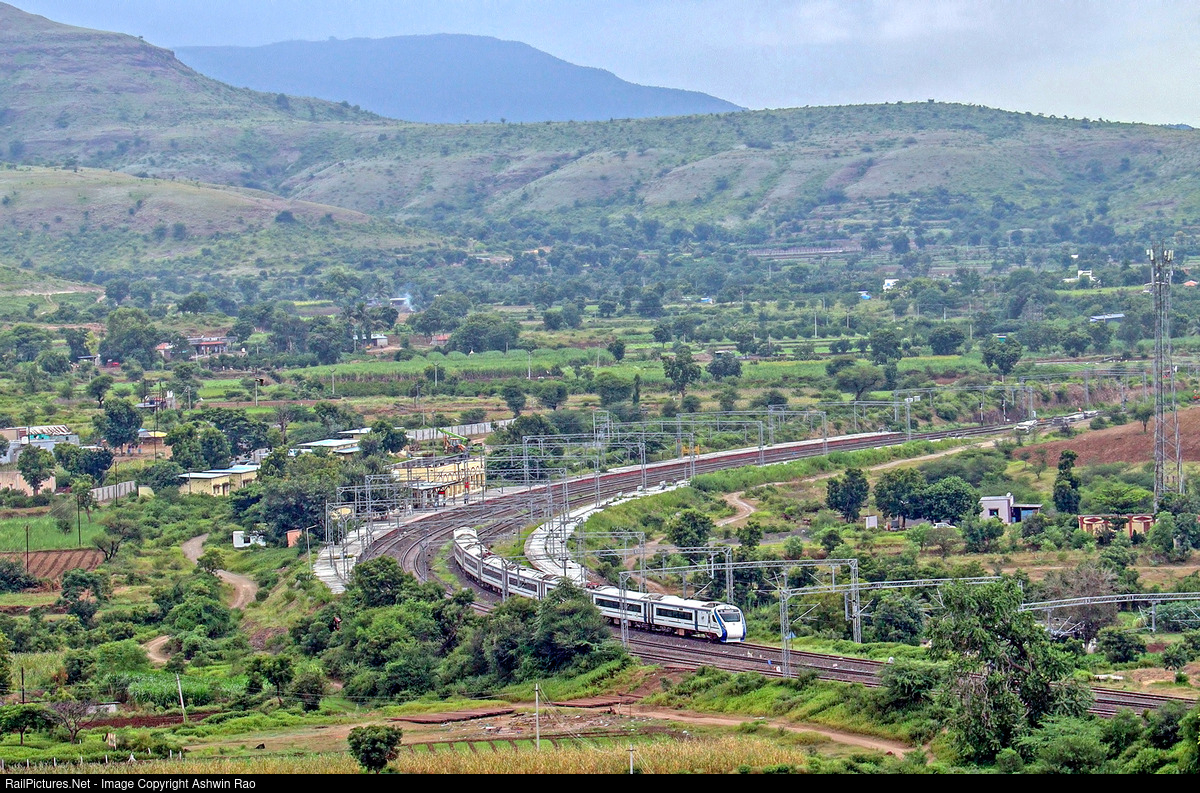 RailPictures.Net Photo: Indian Railways Vande Bharat Express at Shindawane near Pune, India by Ashwin Rao