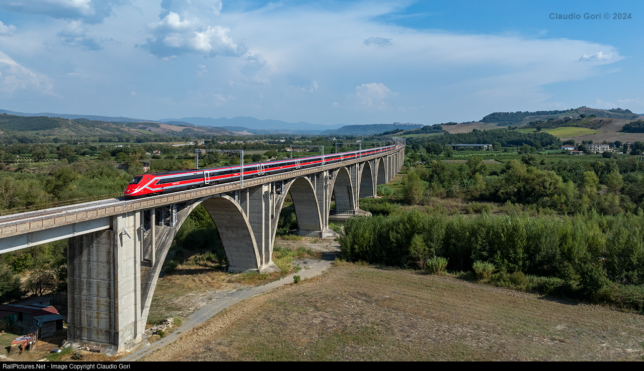 Frecciarossa Salerno-Turin in transit on the Paglia viaduct on the Rome-Florence direct line.