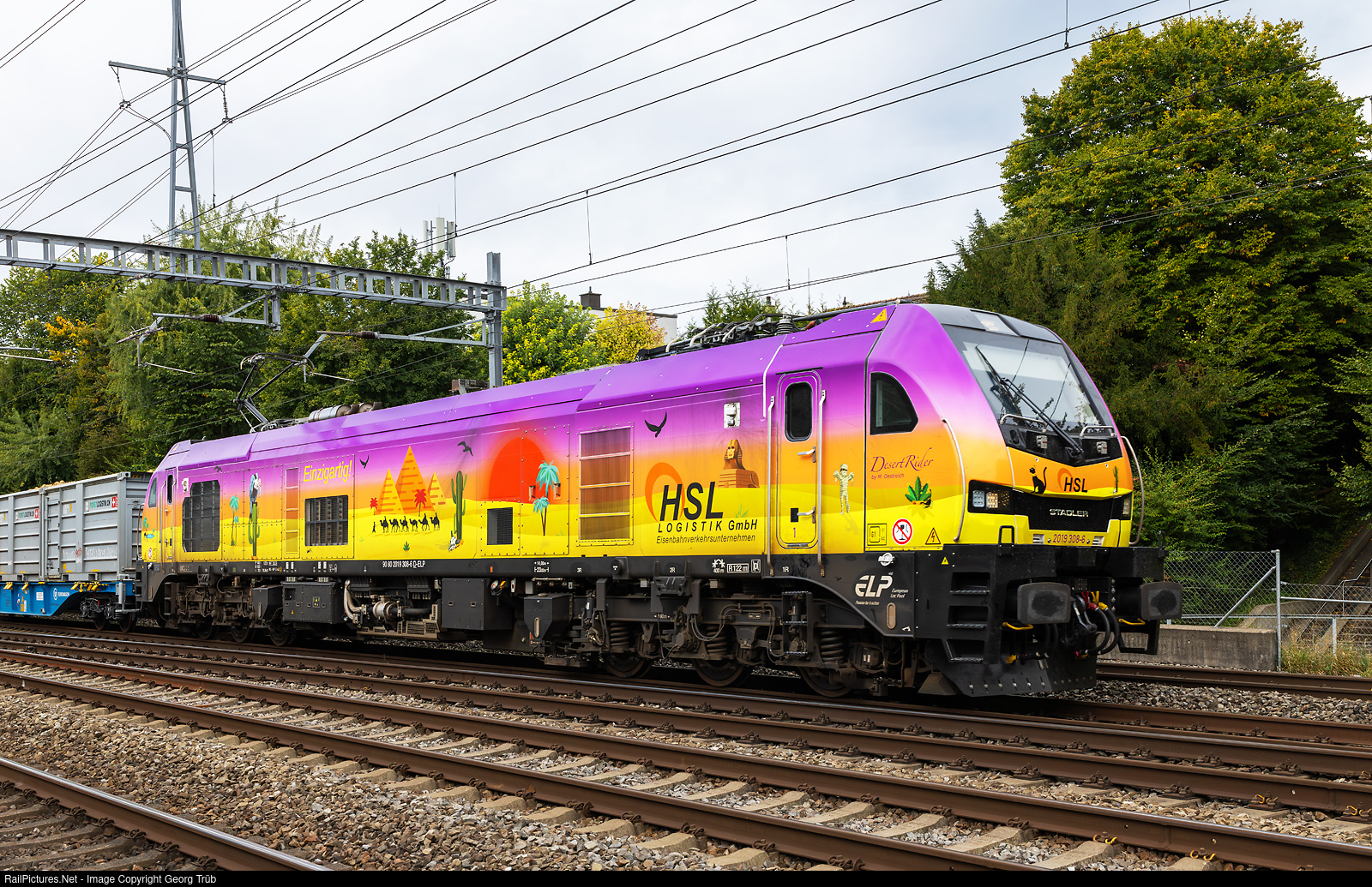 This year, the German company HSL Logistik GmbH, together with its Swiss subsidiary HSL Switzerland (since 2022), is mainly using its new “Euro9000” locomotives from StadlerRail in front of the sugar beet import trains from Germany (northern Germany, Cologne area, Bavaria). With this very powerful six-axle locomotive (tractive force 500 kN), trains with a gross weight of around 2500 tons can be transported from Basel via the Bözberg line and other inclines in the Zurich and Winterthur area to Islikon and the Frauenfeld sugar factory. Locomotive 2019 # 308 with the name “Desert Rider”, designed by Mathias Oestreich and delivered in January 2024, is on its way to Islikon with a train weighing over 2400 tons between Winterthur and Oberwinterthur. The concept by Mathias Oestreich: “The approximately 500 million tons of dust that the Sahara produces every year, distributed by the winds, have an immense impact on our climate and our environment. The dust is also indispensable as a fertilizer for the forests. Annually, 40 million (!) tonnes of dust go to the Amazon, and around 500,000 tonnes go to Germany. The desert is unique, and so is the DesertRider." The Euro9000 locomotives of the HSL Logistik are owned by European Loc Pool (Frauenfeld), were built in Valencia/Spain and are leased by HSL Logistik on a long-term basis.