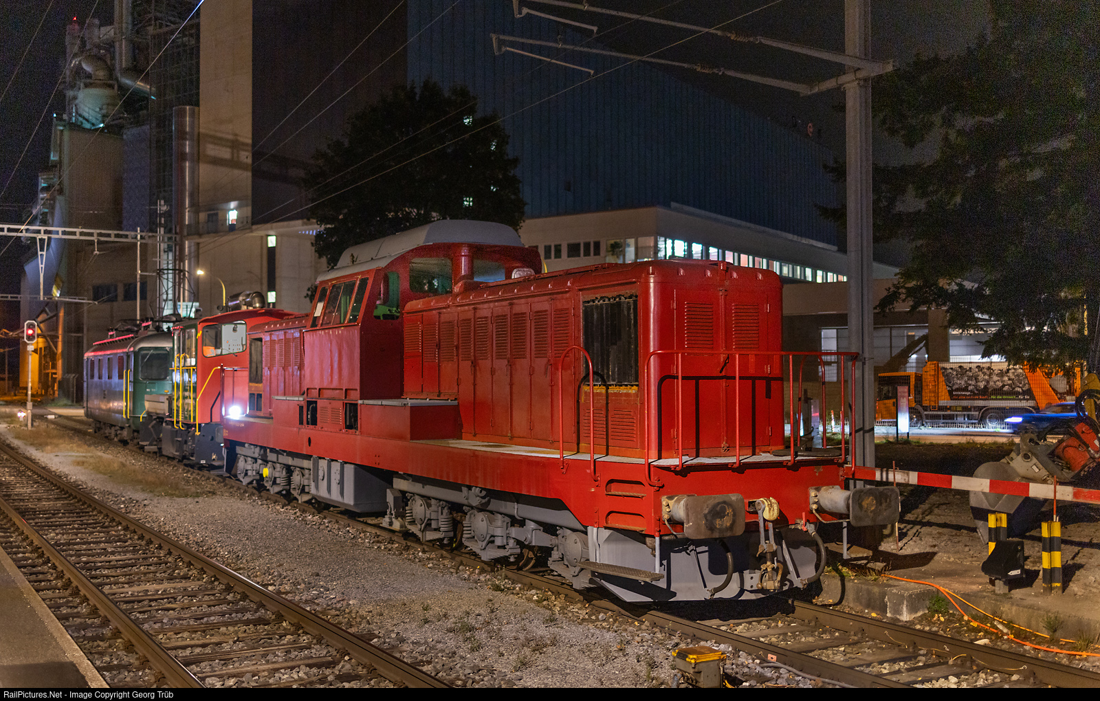 Former SBB diesellocomotive Bm 6/6 # 18501, built in 1954, reached her final destination in Winterthur Grüze, brought to the Maag Recycling for scapping. Train 32391 from Winterthur was pulled by Re 4/4 I # 10039 (Re 416 # 628) (privately owned, operated by TR TransRail), in the consist was diesel shunter Tm 232 # 004 of the Stauffer, operated by Historic Rail Services. In the rear of the train was privately owned former SBB dynamometer measuring car Xd4 # 99701, which served as brake car.