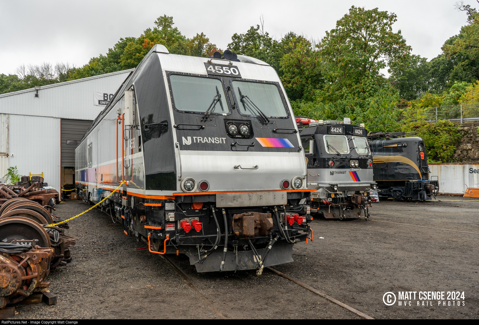 Front and center at the event was a trio of locomotives that have served on the electrified Northeast Corridor and other NJ Transit lines: Pennsylvania Railroad GG-1 no. 4877, which was one of the last "Gs" that ran in NJ Transit service on North Jersey Coast Line trains to South Amboy; NJ Transit ALP-44 no. 4424, which was part of the first class of locomotives ordered by NJ Transit; and NJ Transit ALP-45A no. 4550, one of the agency's newest dual-mode locomotives that can operate via overhead catenary or under diesel power beyond electrification.