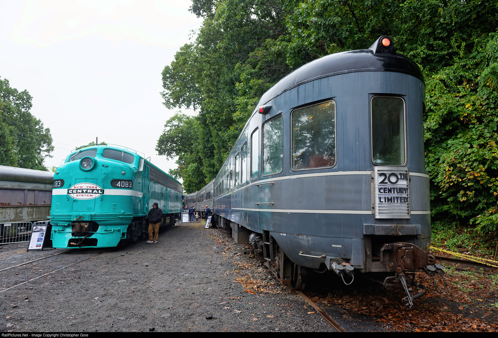 NYC observation car Hickory Creek, and NYC E8 4083, on display at the United Railroad Historical Society Boonton Yard open house.