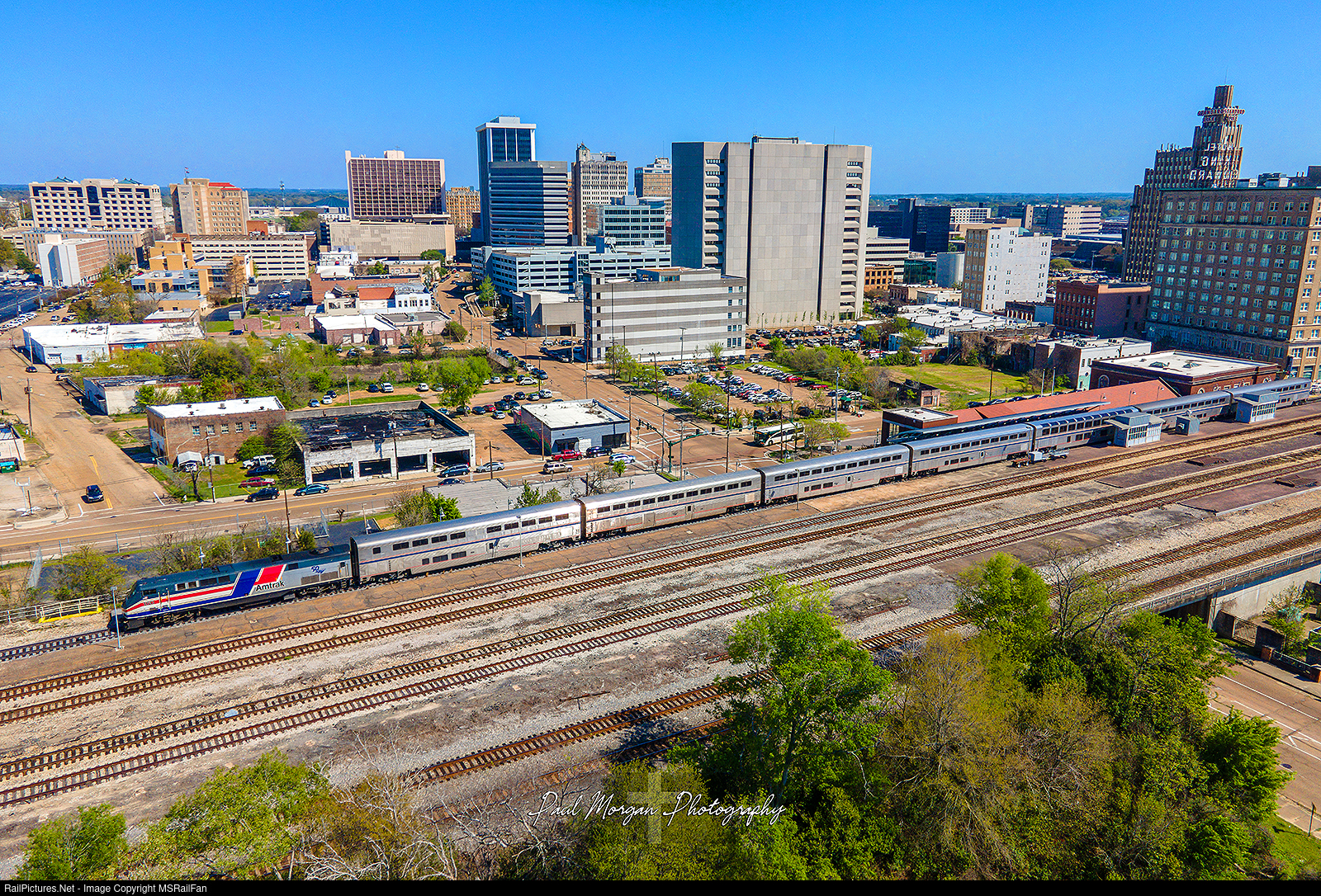 | Amtrak 58 "City of New Orleans" had a special leader earlier this Spring. I just so happened to be in Jackson to catch it in great light with Mississippi's capital city in the background. |