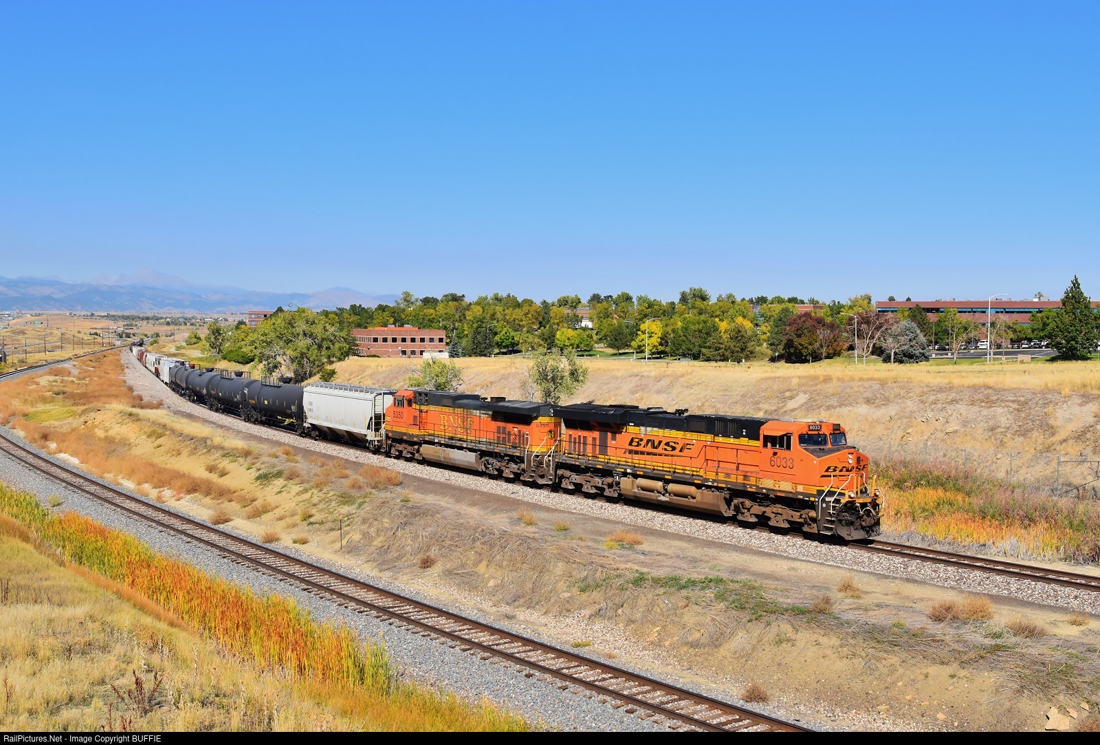 | BNSF 6033 (ES44AC) leads a freight through Broomfield, Colorado as it heads to Denver on the Front Range Sub.