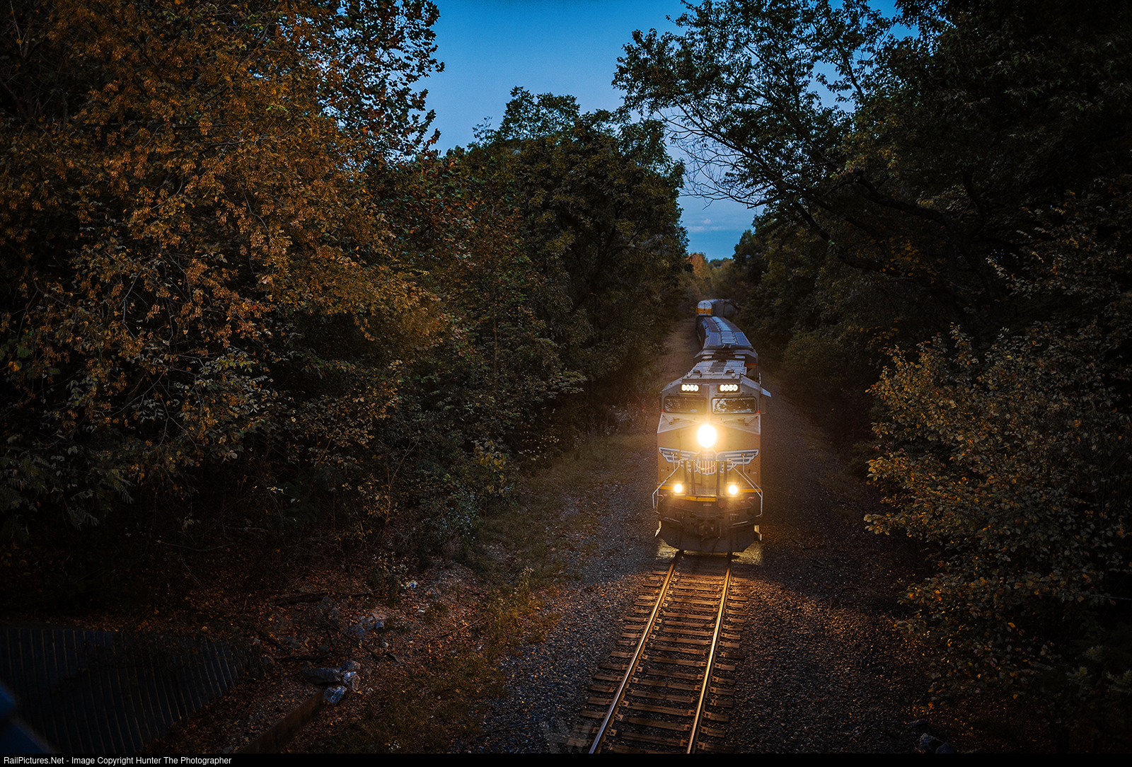 Friday Morning Colors | Ten minutes before sunrise on a nice Friday, October 11, 2024 morning, a southbound CPKC manifest train crawls uphill at Gravette, AR. Leading the train is a single UP motor, supplemented by a KCS unit further back in the train.