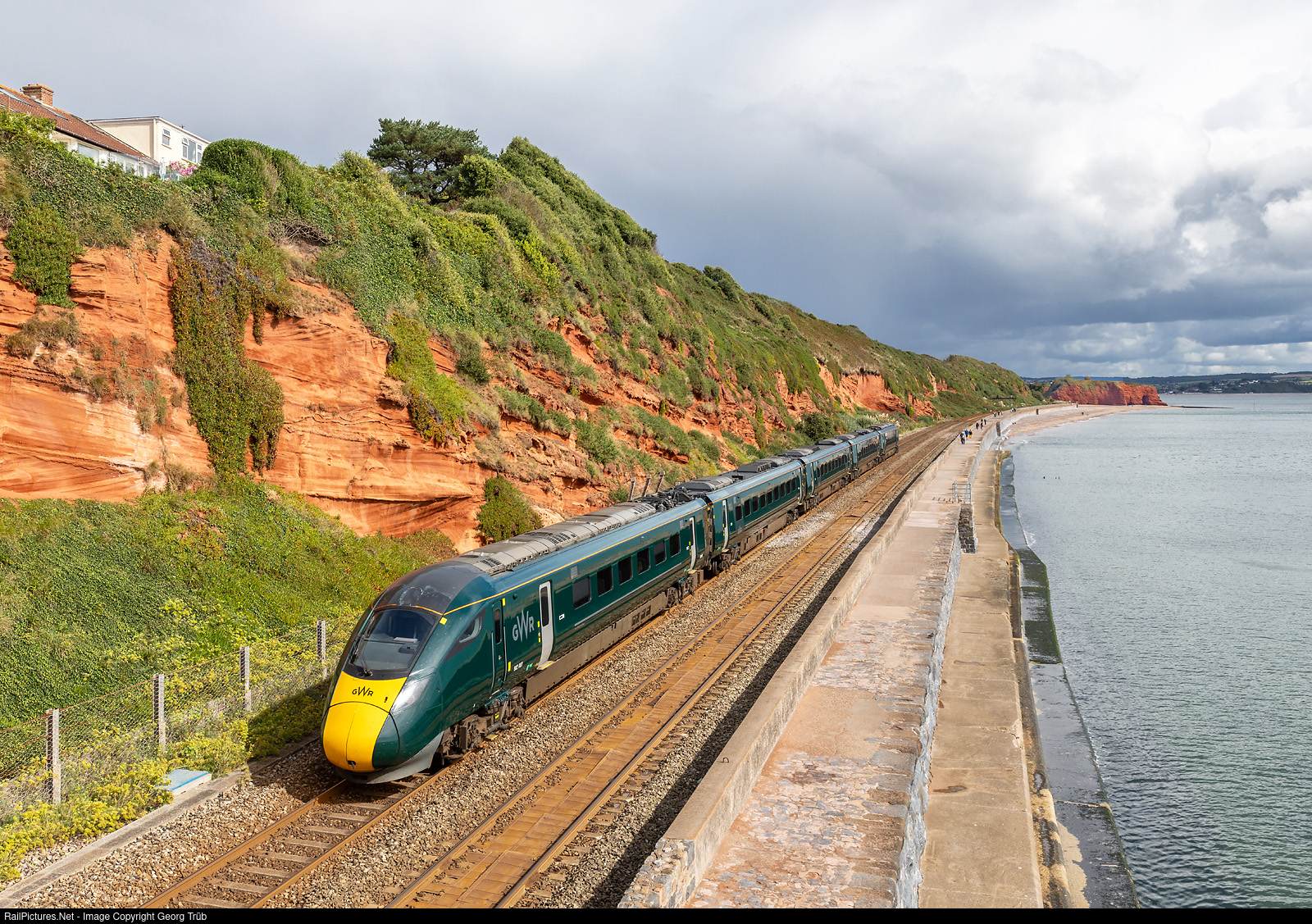 | 5-car "Hitachi" built bi-mode train "IET" (Intercity Express Train) 802 # 007 of the Great Western Railway runs along the South Devon sea wall between Dawlish and Dawlish Warren as 2U16 from Plymouth to Cardiff Central. In April 2023, it was announced that all 36 units would be maintained at the Laira Traction and Rolling Stock Maintenance Depot in Plymouth. |