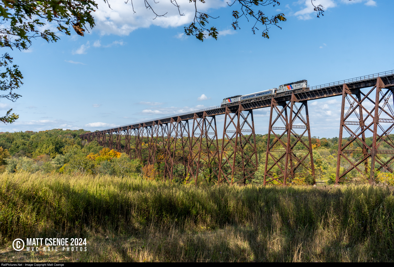 NJ Transit GP40-2 no. 4302 and GP40PH-2 no. 4111 are seen hauling DOXT 216 over the iconic Moodna Viaduct in Cornwall, NY. The train was running as an extra to Port Jervis and back, allowing the FRA inspectors to cover that part of Metro-North Railroad's territory. |