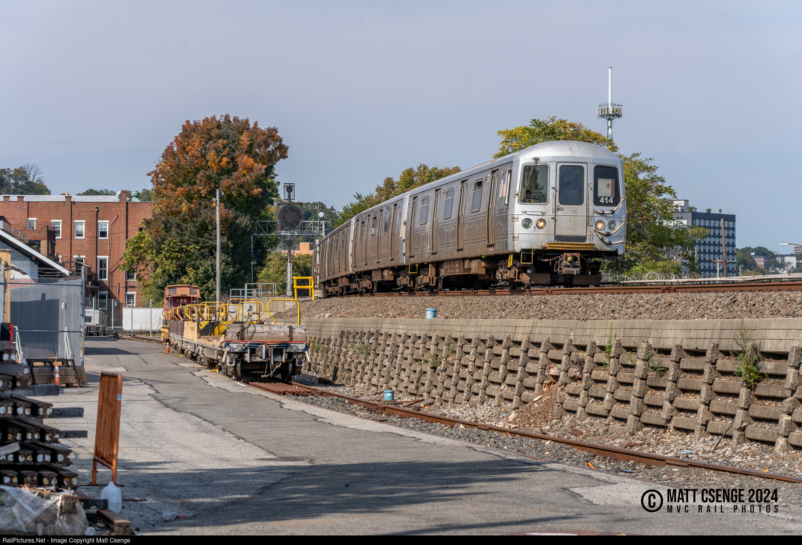 Staten Island Railway (SIR) R44 car 414 is the lead unit on an eastbound train seen passing the color position light signals west of Clifton Station on its way to Tottenville. These cars have been serving the island for the last 51 years, though their end is looming as the first of their replacements have entered service. |