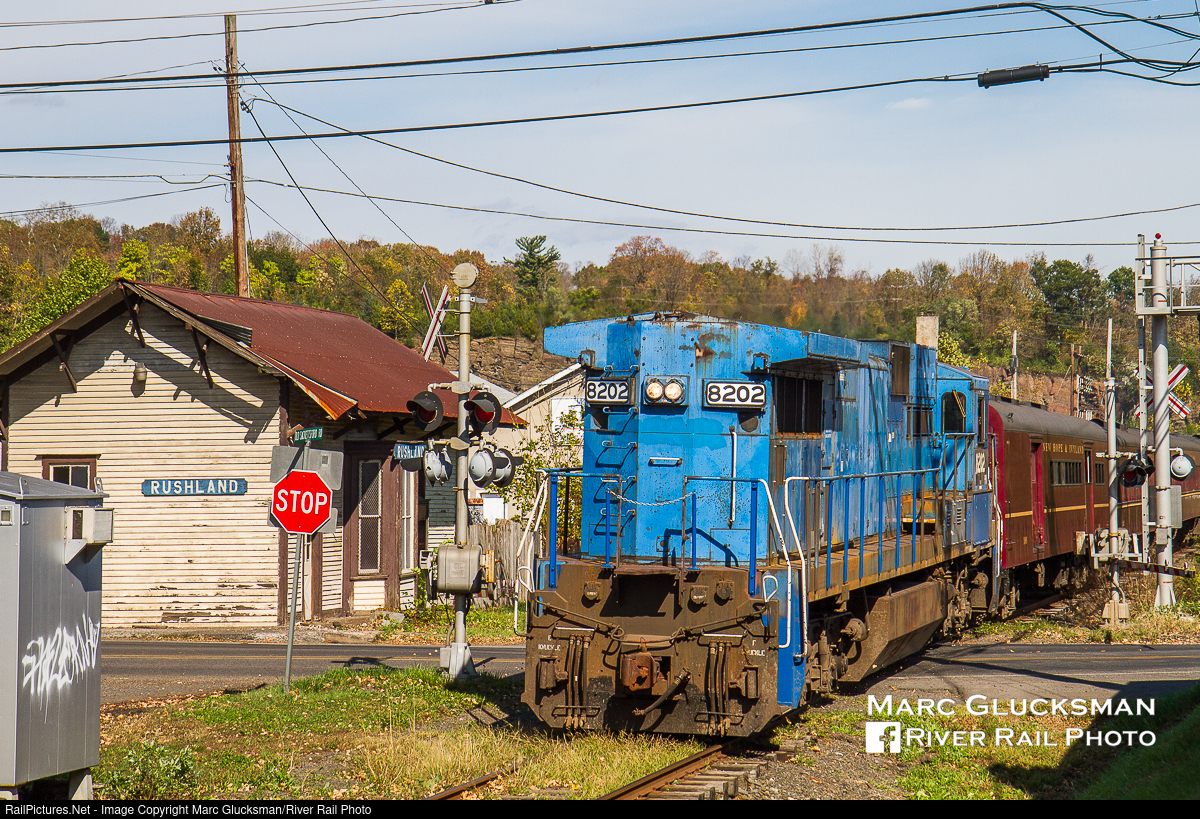 Go Shopping In New Hope. For a few years, the New Hope Railroad offered an "Autumn Shopper's Special" that operated round trips between New Hope and the platform of SEPTA Warminster Station. On October 16, 2011, NHRR 8202 (née-CR 6004, C39-8, GE, 7/1986) was the power for this train, which included a power car and three former Reading coaches. Though famously sister unit NHRR 8212 was the last General Electric C39-8 to operate with its own prime mover (we see you NS 1000), NHRR 8202 also traveled the rails of the NH&I for a while, and also shows its Conrail heritage. The train is seen passing the former Reading Company station in Rushland, Pennsylvania.
