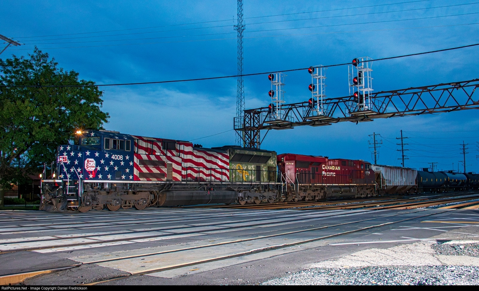 KCS 4006, the Veterans SD70ACe now under the CPKC umbrella, strolls into Franklin Park, IL leading CPKC ethanol train 529, which will later take the C&M Sub towards Wisconsin.