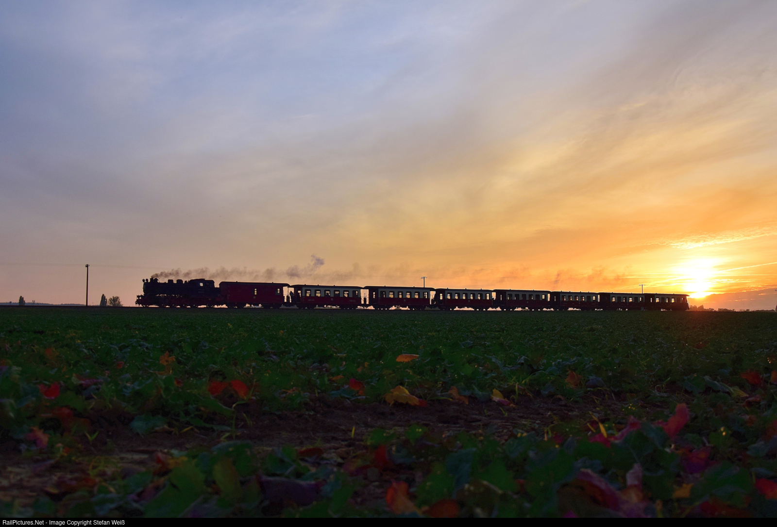 | At sunset on the evening of October 18th, the 99 2321 steamed along the Baltic Sea coast towards the Baltic Sea resort of Heiligendamm with the last train of the day. |