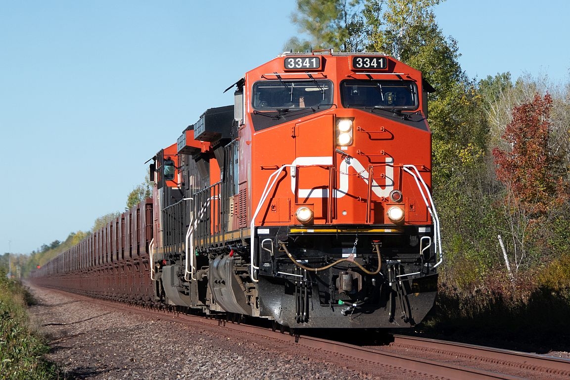 A duo of CN AC44C6Ms lead ore loads South through Fayal. 51 of these GE rebuilds are being equipped with straight air to replace the classic old power on the iron range.