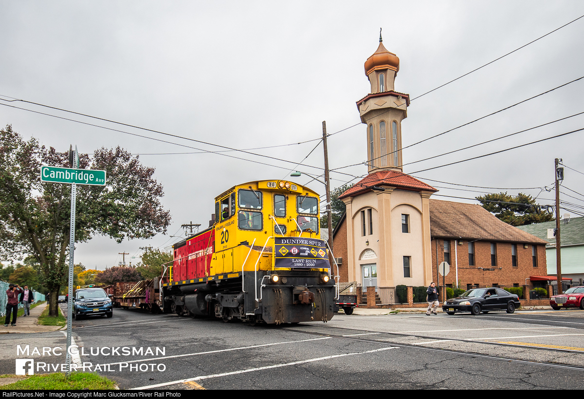 Last Street Run. On the morning of Tuesday, October 20, 2020, Morristown and Erie Railway SW1500 20 rolls down Monroe Street in Garfield, New Jersey for the final time, with the last salvage from the former Erie Railroad Dundee Line. This branch had been operated by the New York and Greenwood Lake Railway in the recent era, until that company ceased operation. For a few days around that month, trains carrying the removed rails traveled through the streets of Garfield, and as the banner on the locomotive indicates, this was the final trip. The train is seen passing the intersection of Monroe Street and Cambridge Avenue, which is now just another street in New Jersey and has no evidence left of the 140 years of railroad operation.