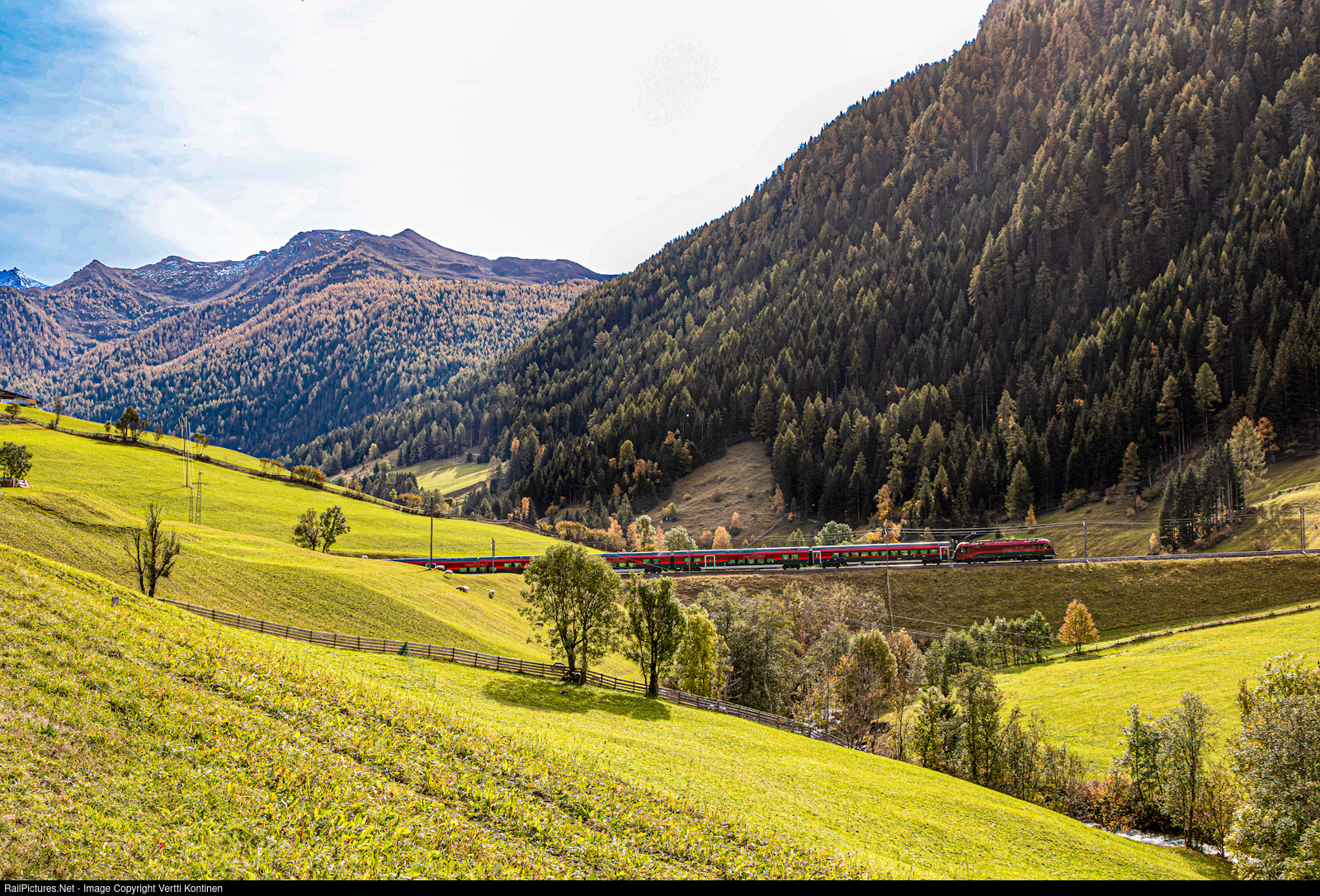 | Sometimes backlight can make a photo really intresting, like in this case of Railjet RJ 83 climbing the steep incline on the St. Jodok horseshoe |