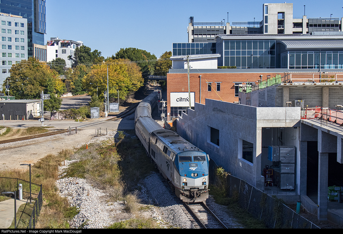 RailPictures.Net Photo: AMTK 105 Amtrak GE P42DC at Raleigh, North Carolina by Mark MacDougall