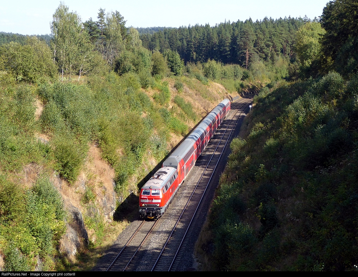 | 218 415 approaches Roslau with the 1129 Munich to Hof. This loco had took over from an electric loco at Regensburg. |