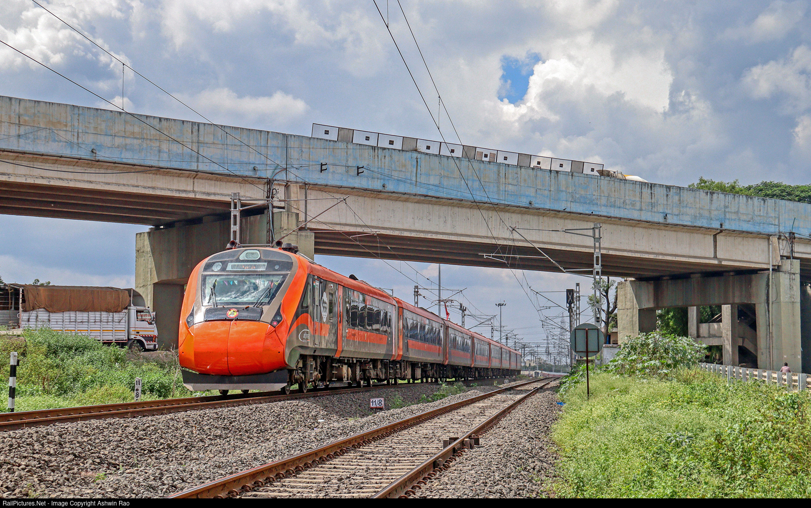 RailPictures.Net Photo: Indian Railways Vande Bharat Express at Sasvad Road near Pune, India by Ashwin Rao
