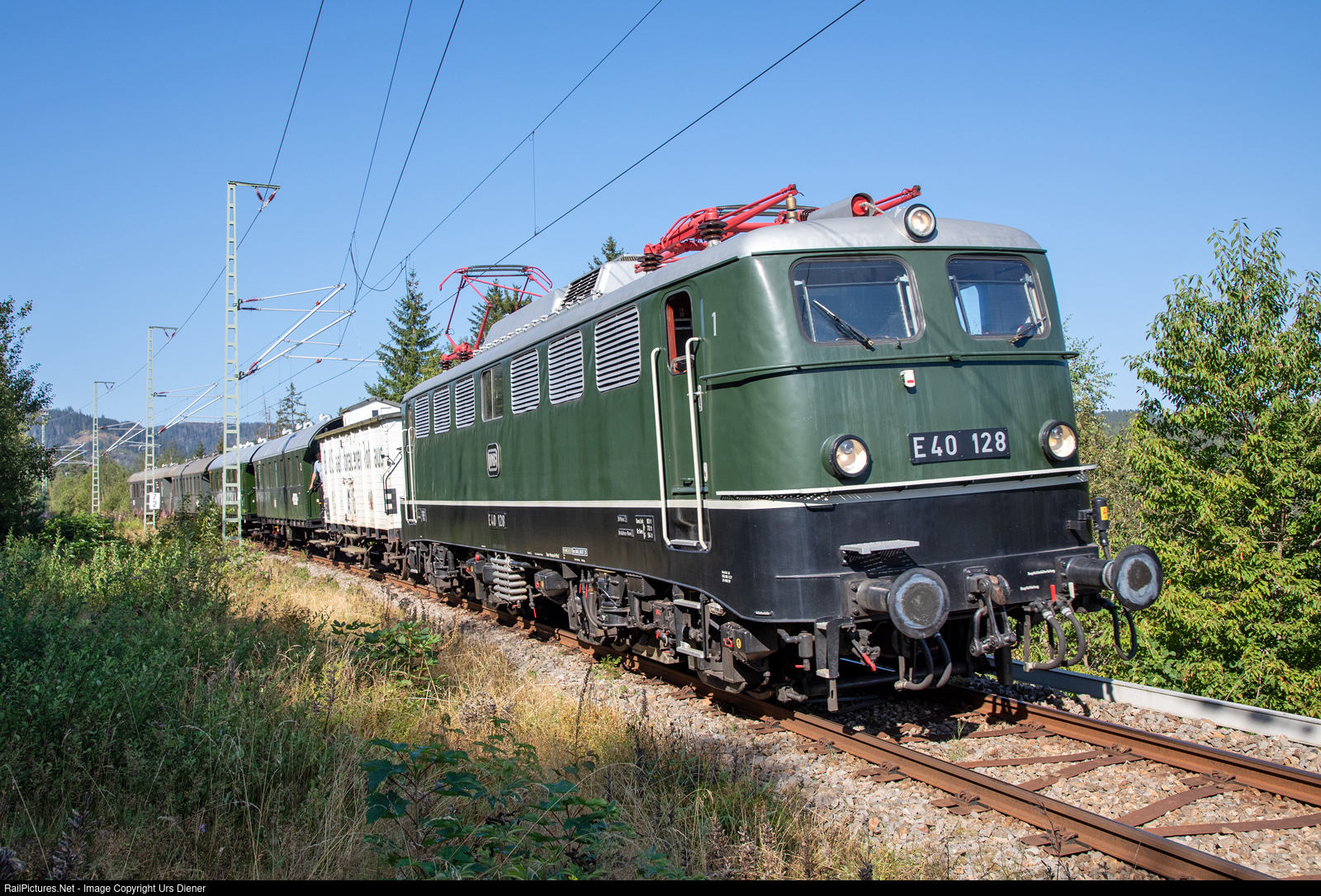 | The E 40 128 standard locomotive, built in 1959 by Kraus Maffai AG and Siemens-Schuckert-Werke GmbH for the Deutsche Bundesbahn, is now owned by the DB Museum Koblenz. Over the summer months she pulled the special weekend trains between Seebrugg and Titisee organized by the IG 3-Seenbahn. |