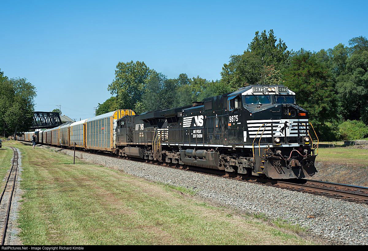 NS 9875 leads autoracks East along the ex-Lehigh Valley mainline.