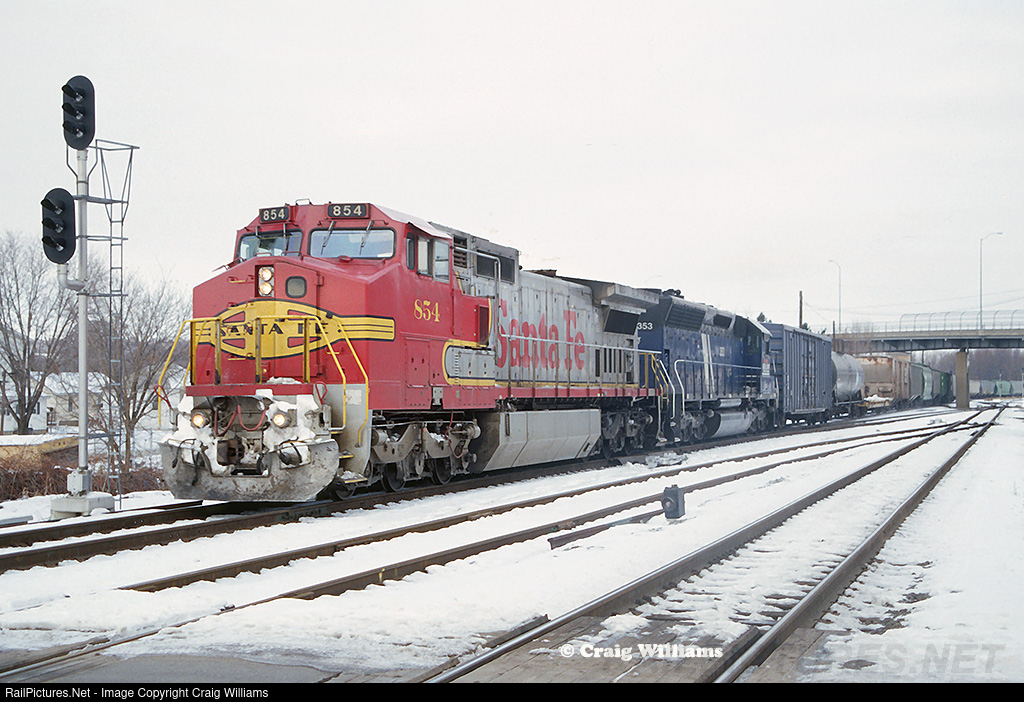 RailPictures.Net Photo: ATSF 854 Atchison, Topeka & Santa Fe (ATSF) GE C40-8W (Dash 8-40CW) at East Dubuque, Illinois by Craig Williams