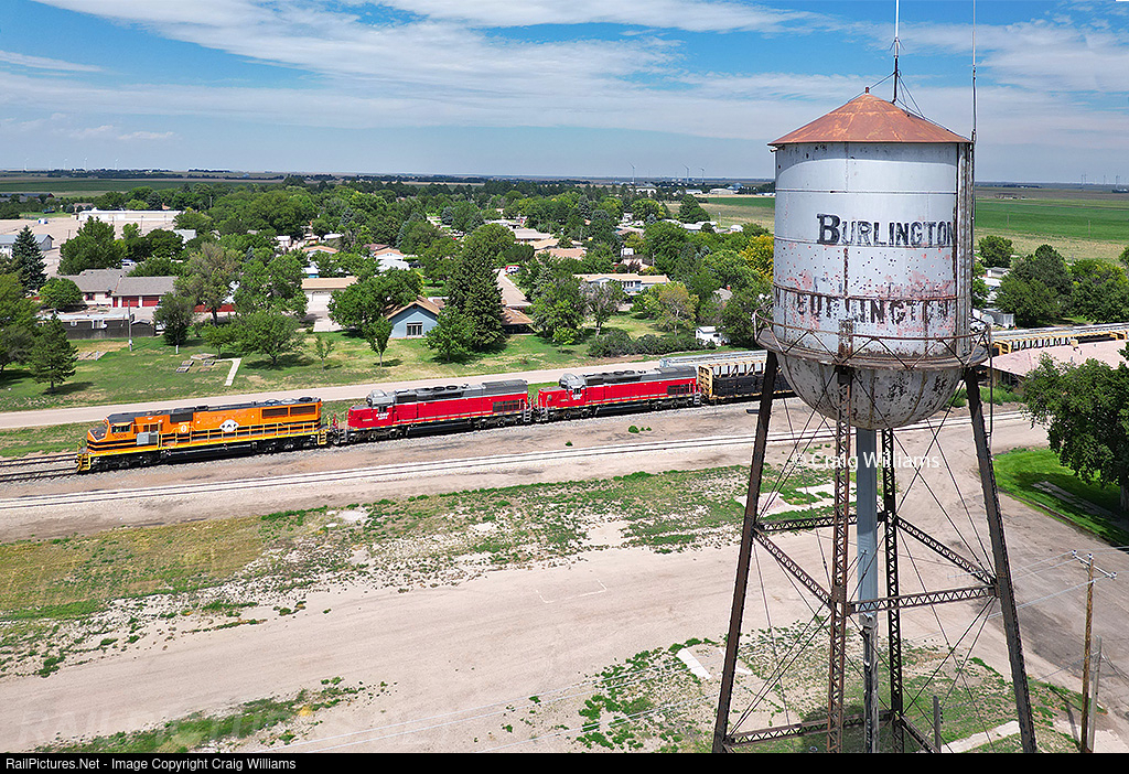 We did a great afternoon chase with the Salina to Limon local freight train. The sun came out at the right time, as they got to Burlington. As anytime with the Kyle, these jobs do things as hard as possible. With 2 hour of work at here, and 90" work at Stratton, and a 9 hour base schedule for the crew, the train went 30 miles. Crew spent time switching out loaded grain cars behind a bunch here.