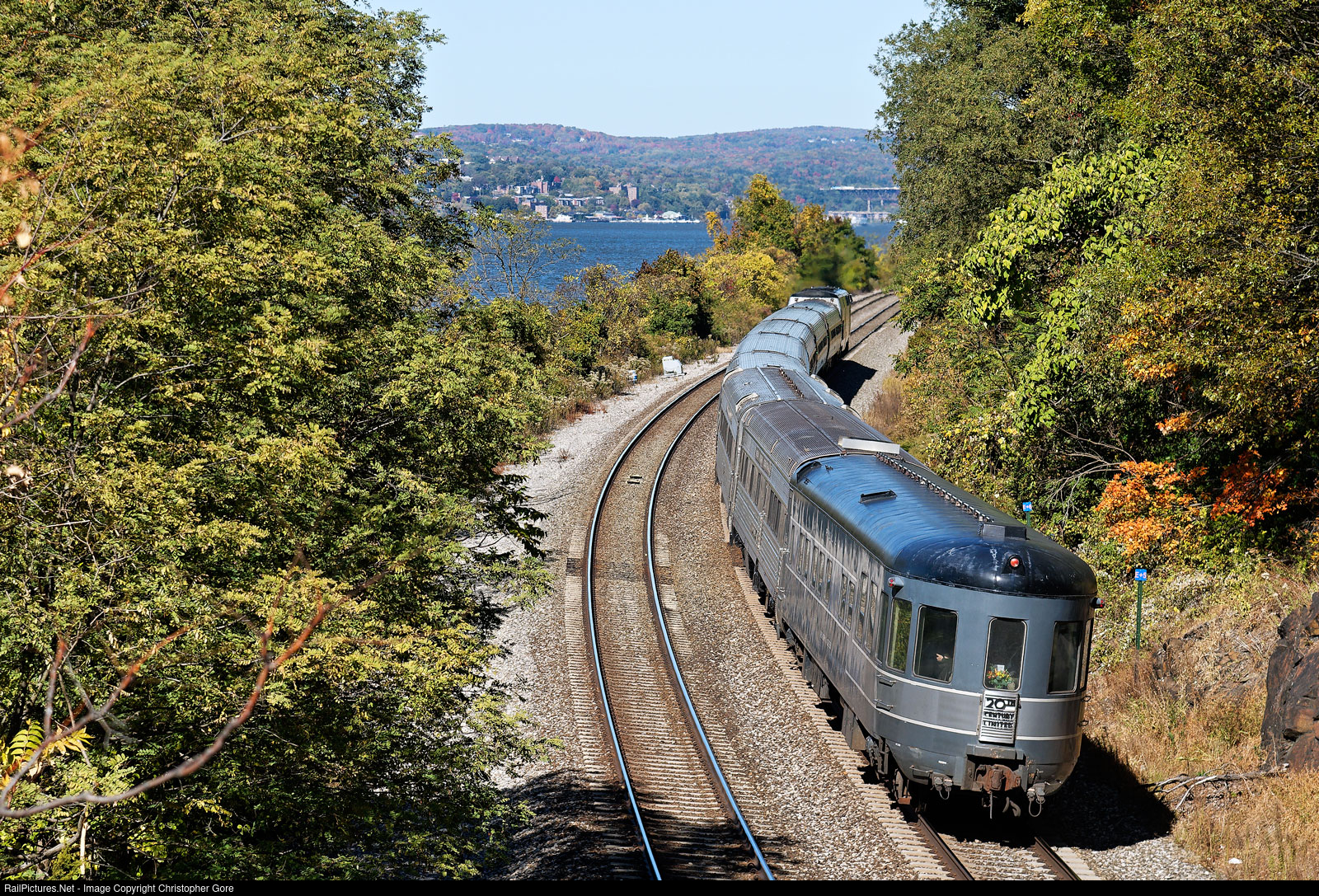 | On the rear of Amtrak train 233 are United Railroad Historical Society's Hickory Creek, Swift Stream and tavern lounge car 43. The three cars have been making round trips between NYC and Albany for the URHS Hudson River Rail Excursions. |