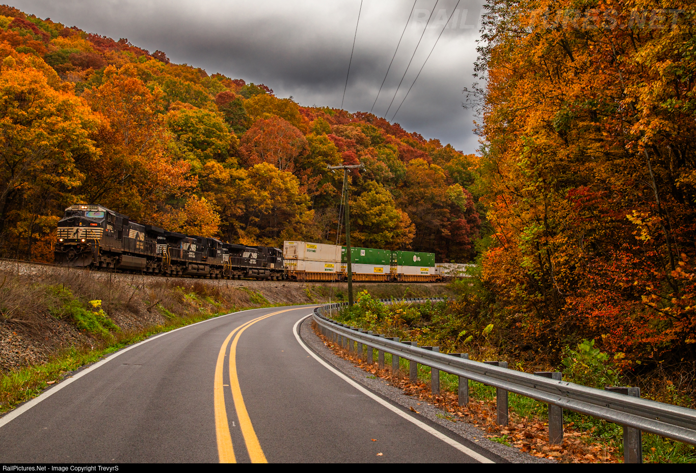 NS 29C leans into a curve near Ingleside, WV. The fall colors are in full swing here in the mountains.