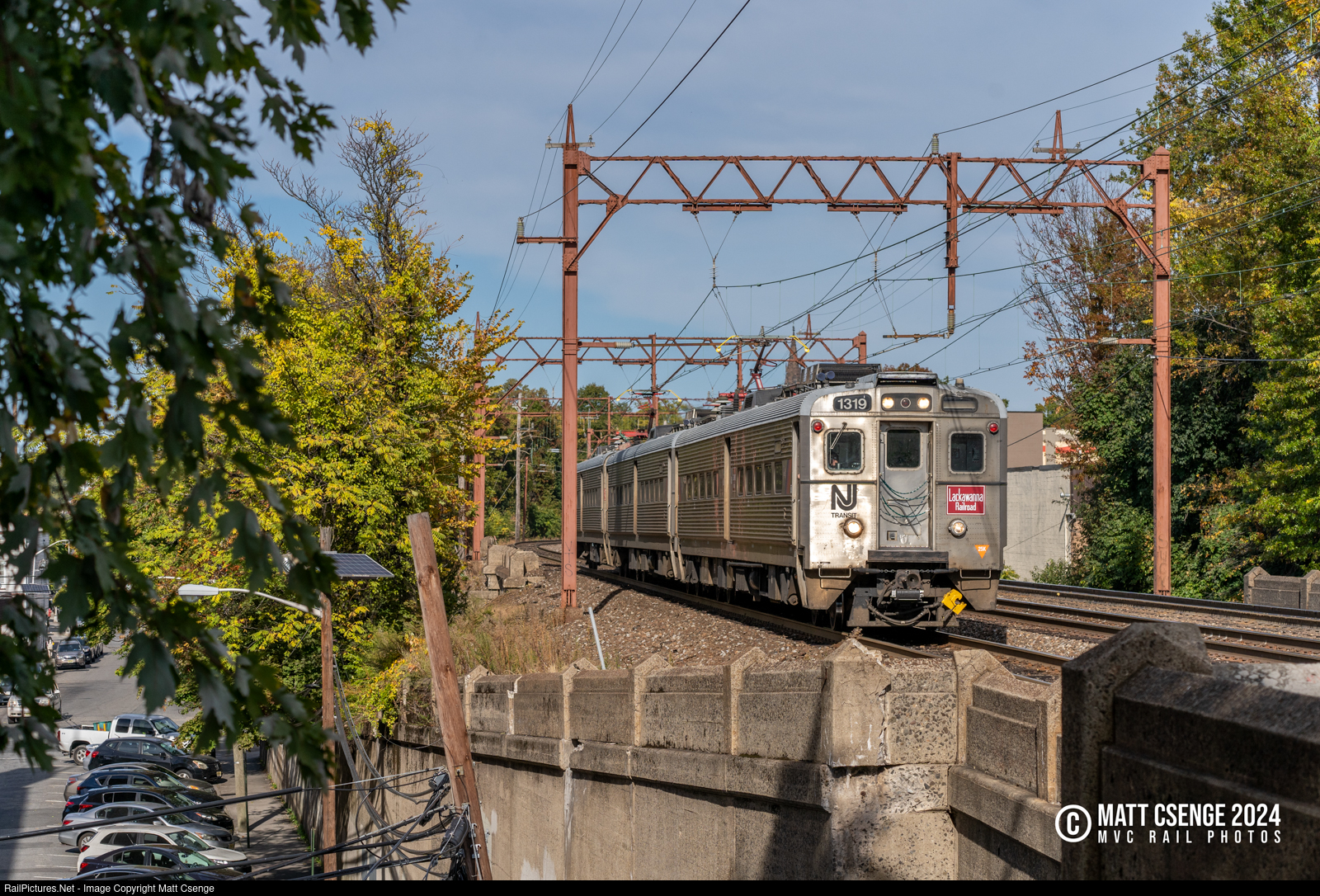 NJ Transit Arrow III car 1319 is the lead unit on Gladstone Branch train 423, seen here approaching Highland Avenue Station. |