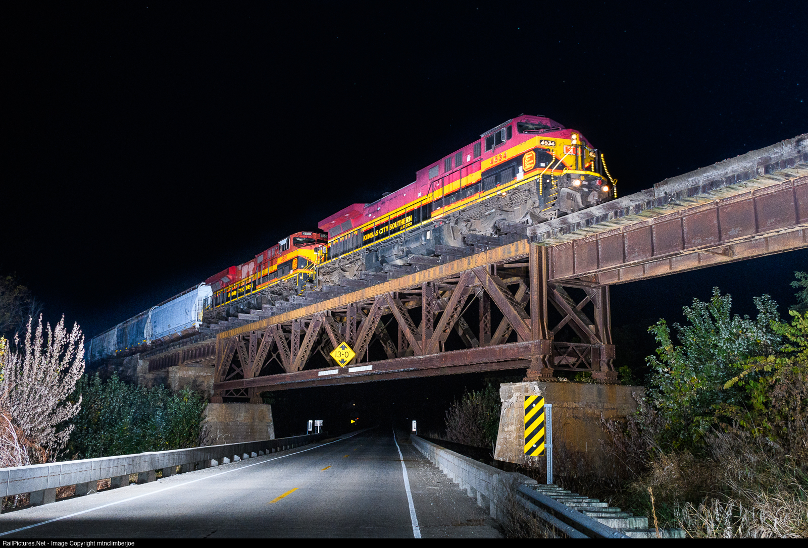 | It's a quiet night outside of Washington, Iowa until northbound CPKC manifest freight 251 breaks the silence as it rolls through town just before 11 PM. A pair of KCS GE's along with a mid-train DPU power the train as it crosses the bridge that spans the West Fork Crooked Creek as well as 250th Street. |