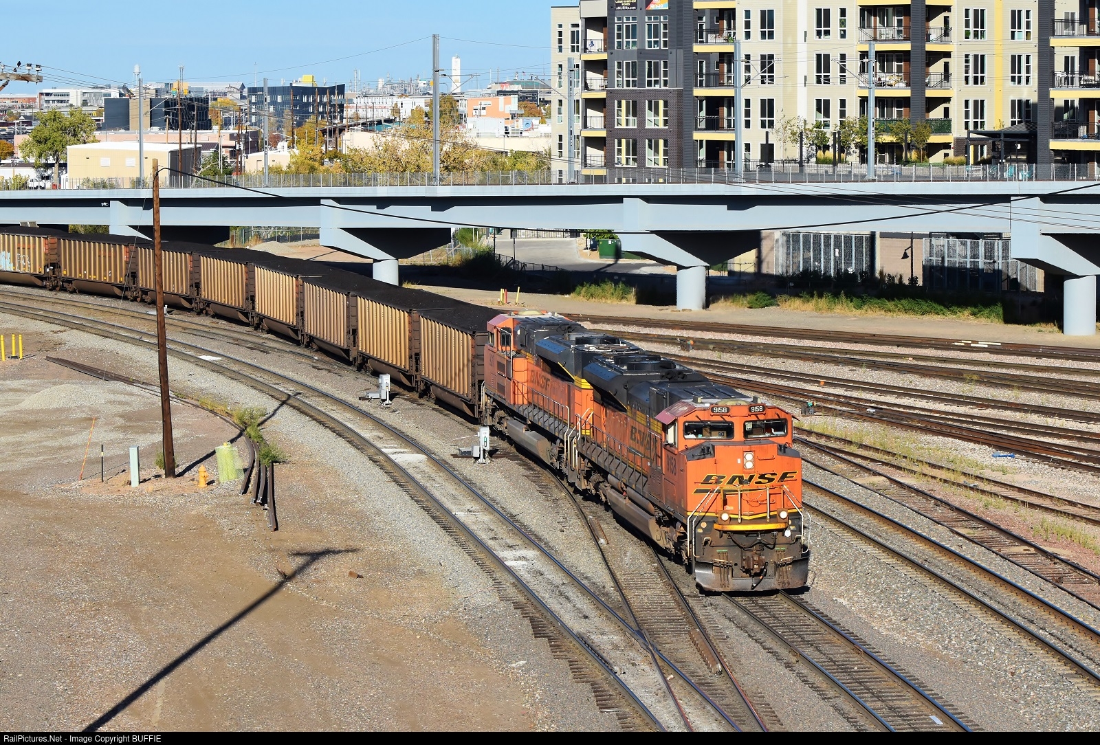 BNSF 9158 (SD70ACe) moves a loaded coal train through the Denver Yard as it heads south towards the Joint Line.