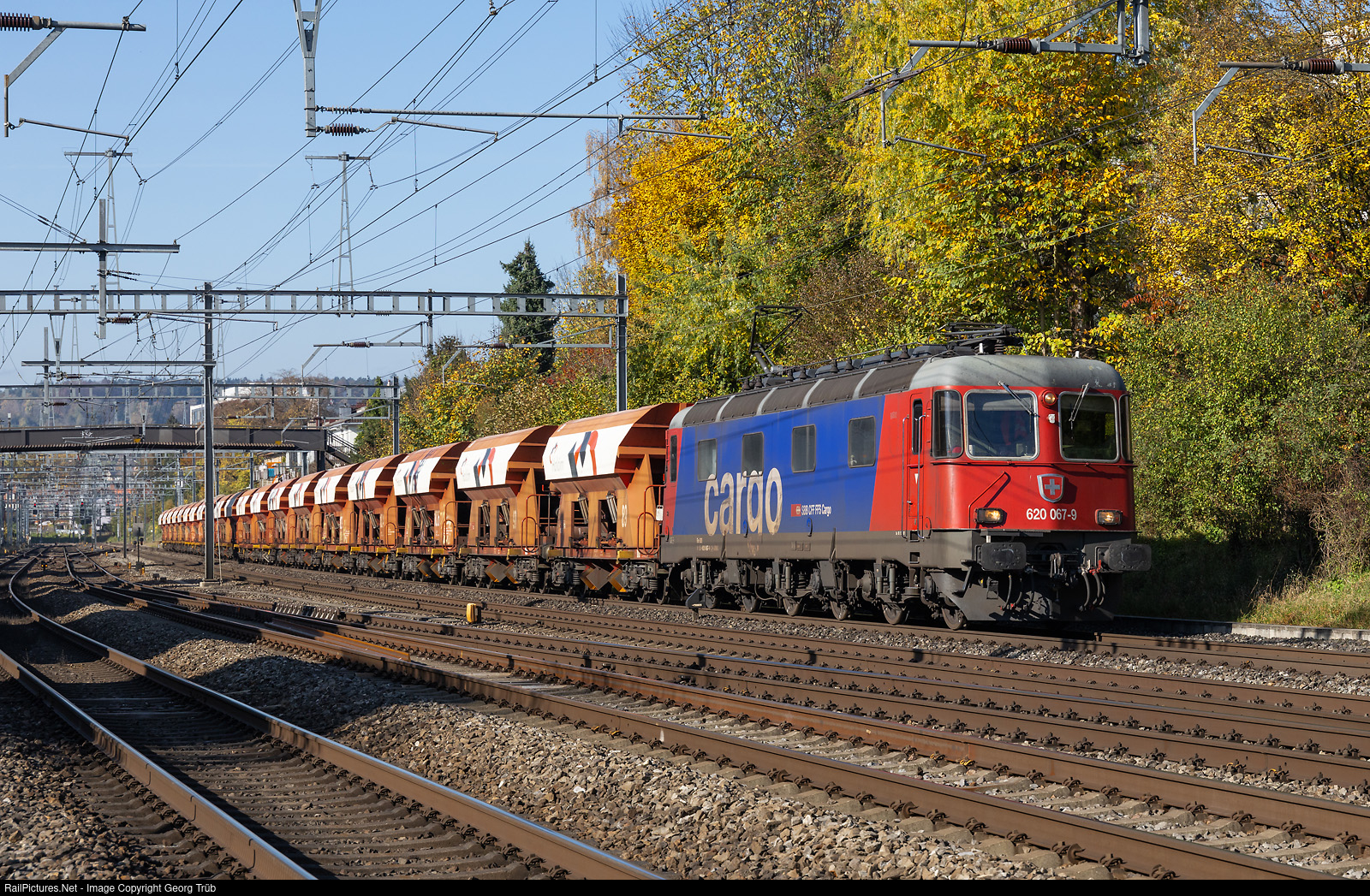 | Re 620 # 067 (Re 6/6 # 11667) of the SBB pulls the loaded HOLCIM gravel train 67481 from Hüntwangen-Wil via Bülach-Winterthur to Bürglen, between Winterthur and Oberwinterthur. |