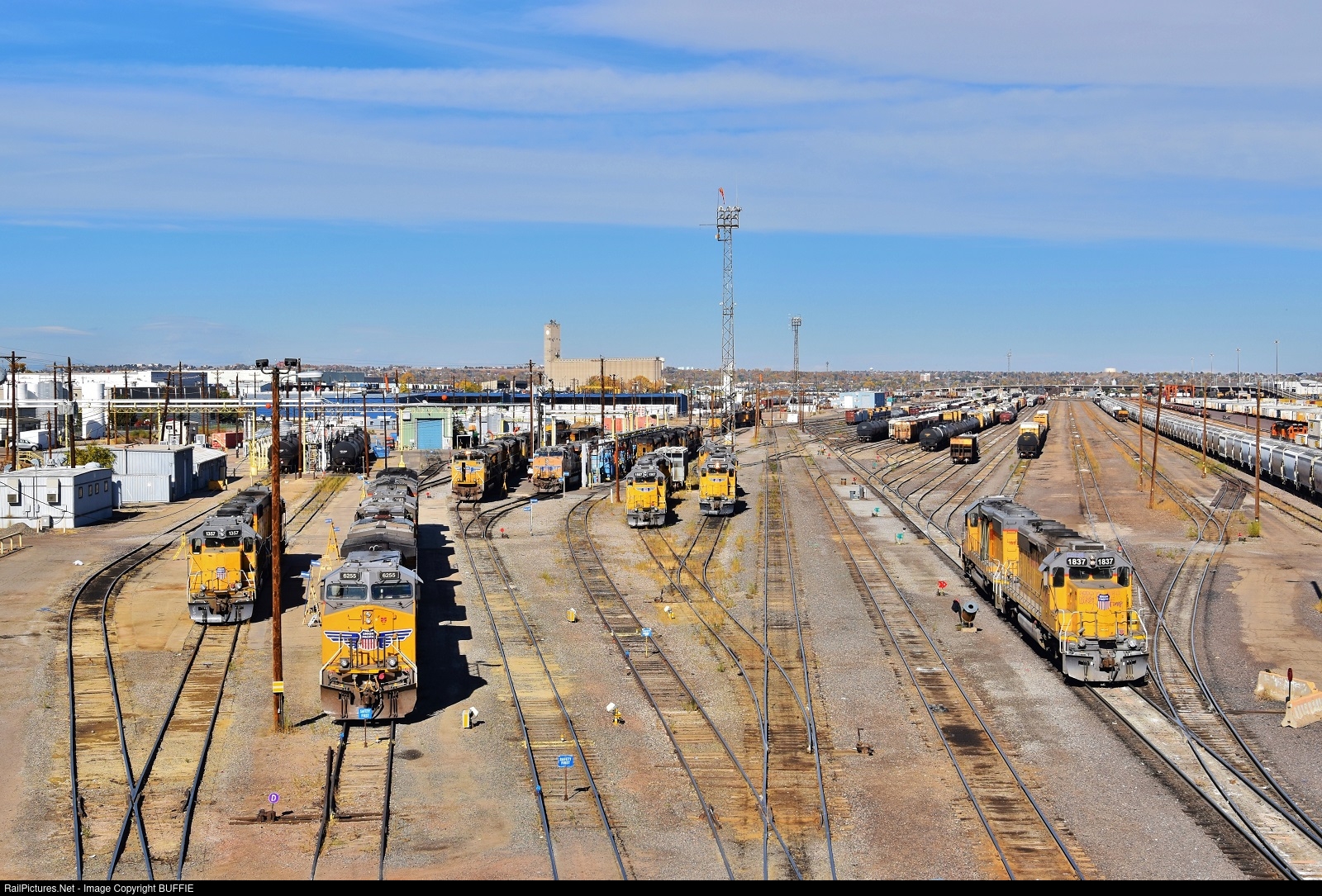 | Former Southern Pacific unit UP 6255 (AC4400CW) waits in the Union Pacific's North Yard in Denver, Colorado for an assigned train.