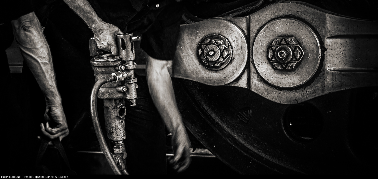 I like to think that this photo I took on 7-24-2009 of two SP No. 4449 mechanics working the almighty Alemite gun in Alma, MI is one where I paid homage to Hines.