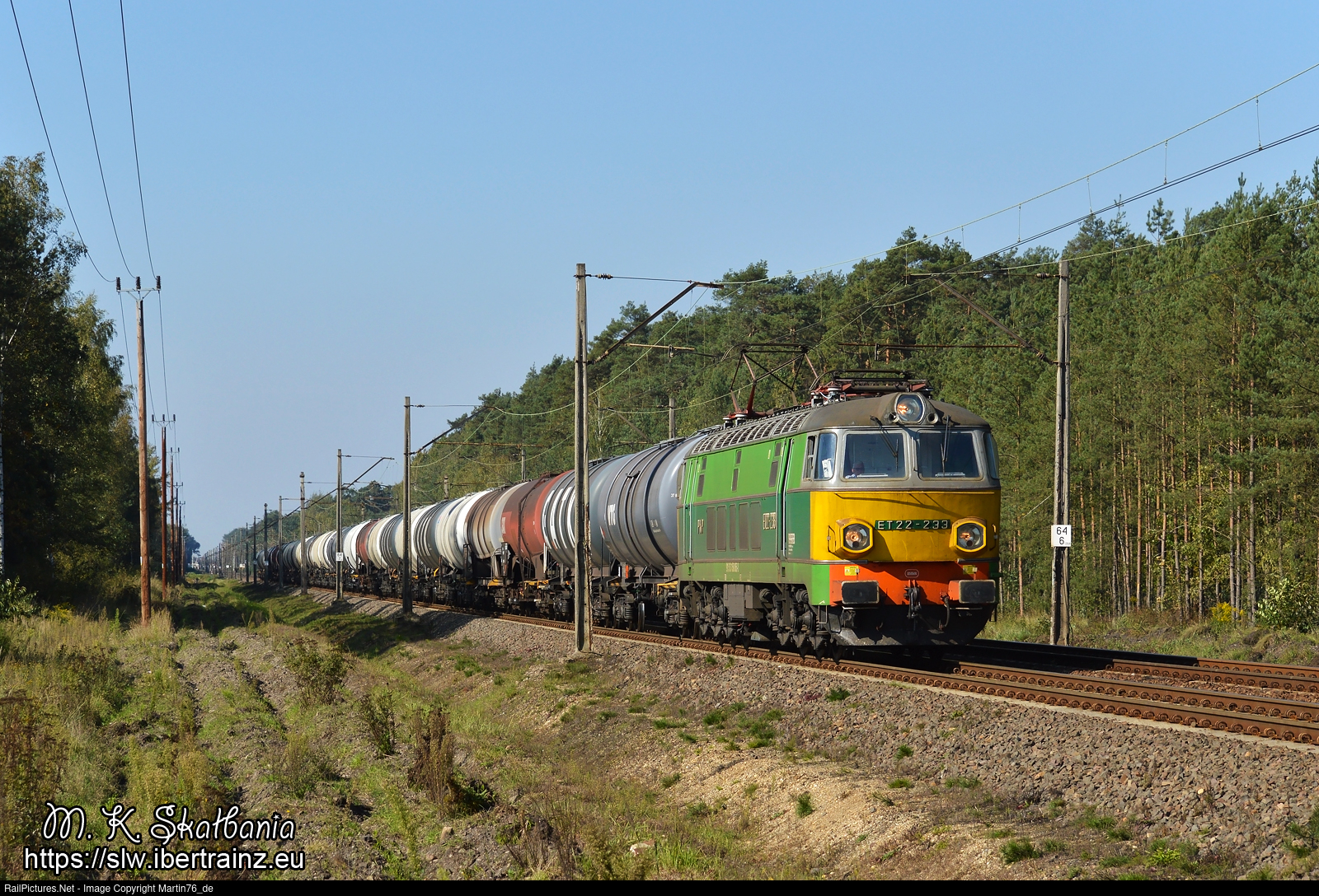 The electric locomotive ET22-233 hauling a freight train from Ostrow Zachodni to Trzebinia.