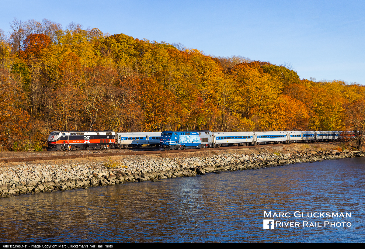 Fall Foliage Meet. During the last weekend of strong fall foliage color on Sunday, November 3, 2024, MTA Metro-North Railroad Train 2851 with 230 (New Haven/PC) met Train 4144 with 214 (40th Anniversary/Employee Appreciation) near Oscawana Island in Croton-On-Hudson, New York. Ironically, these two locomotives represent the newest (MNCW 214) and oldest (MNCW 230) 'special interest' locomotive designs on the MNR roster. The Hudson Valley in New York State is one of the great places to enjoy the trees changing color change in the northeast, and the trains have been very crowded during recent weekends.